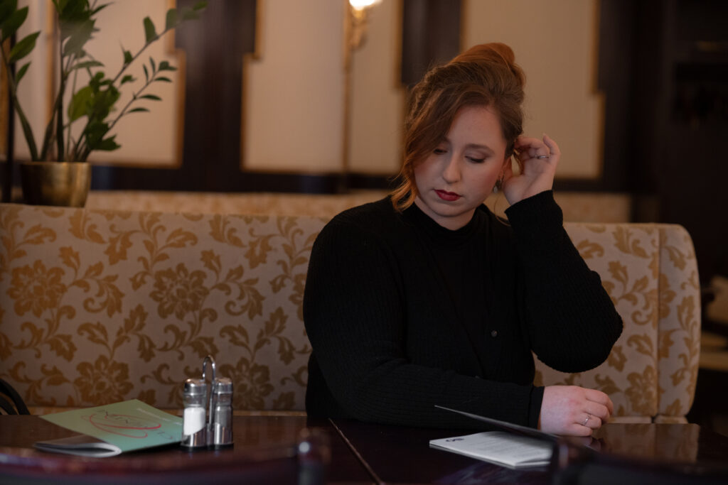 Hair and makeup were developed in collaboration with a stylist to support the understated, natural tone of the story. The goal was to create a look that felt natural within the environment of the café.