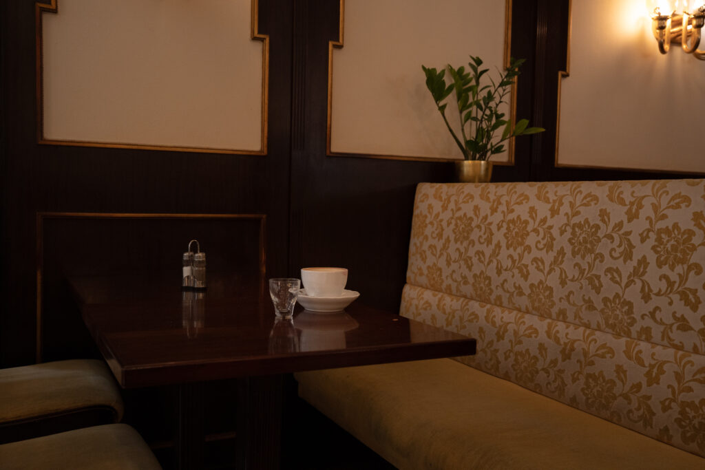 A cinematic editorial exploring quiet moments in a traditional café setting.